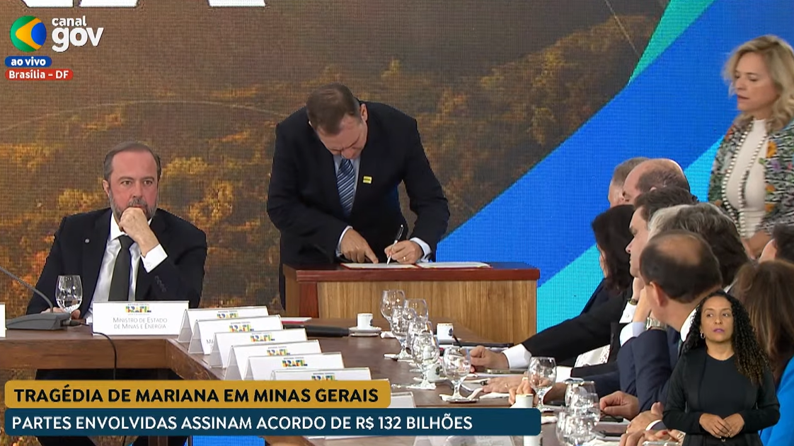 No fim da manhã desta sexta-feira (25), o presidente da República, Luís Inácio Lula da Silva, assinou em Brasília, o acordo de repactuação para a reparação dos danos do desastre-crime do rompimento da barragem de Fundão, ocorrido em Mariana–MG, na Bacia do Rio Doce. O acordo, que reorganiza as ações reparatórias e compensatórias para os próximos 20 anos, soma 132 bilhões de reais em obrigações de pagar e obrigações de fazer.